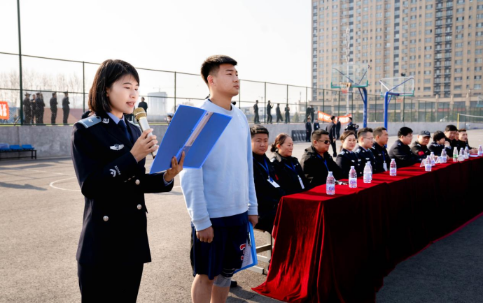 4月19日下午,我院第一届“春风杯”校园篮球锦标赛在篮球场正式拉开帷幕,此次赛事是我院全面贯彻落实习近平总书记关于教育、体育的重要论述和全国教育大会精神,把学校体育工作摆在更加突出位置,全面加强和改进新时代学校体育工作精神的重要举措。比赛由警察体育教研部联合党委学生工作部共同举办,学院党委副书记迟文秀出席开幕式,各学员大队组成14支球队参加比赛。