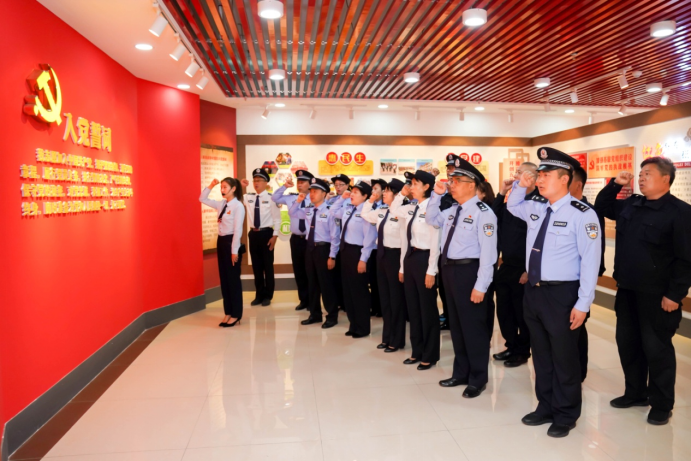 随后,全体党员干部在庄严的党旗下重温入党誓词,深切表达对党的事业奋斗终身的坚定决心。